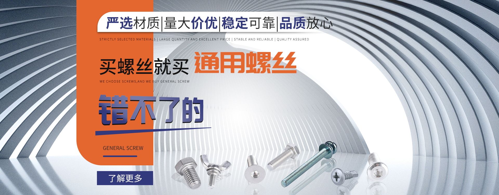 中山市通用螺絲制造有限公司成立于1987年,工廠坐落于廣東四小虎之一的中山市,北連廣州,毗鄰港澳。總占地面積14000m 2,足有兩個(gè)足球場(chǎng)1998年通過(guò)德國(guó)萊茵TUV ISO9002認(rèn)證,于2002年通過(guò)TUV ISO9001:2000認(rèn)證。2008年通過(guò)ISO 14000認(rèn)證。我司主營(yíng)自攻螺絲組合螺絲機(jī)械螺絲防松螺絲等標(biāo)準(zhǔn)和非標(biāo)準(zhǔn)件既可按客戶的要求提交所需的產(chǎn)品,也可為客戶量身定做所需產(chǎn)品。我司擁有專業(yè)的產(chǎn)品檢測(cè)隊(duì)伍和投影分析儀、金相、硬度計(jì)(韋氏和洛氏)、扭矩力測(cè)試計(jì)等完善的檢測(cè)設(shè)備,為電子、電器、五金塑料、衛(wèi)浴、家具、機(jī)械、汽配等行業(yè)提供符合歐盟質(zhì)量、環(huán)保要求的產(chǎn)品2006年,我司自主開(kāi)發(fā)的ERP管理系統(tǒng),使我們的生產(chǎn)和服務(wù)效率得到了極大的提高 經(jīng)過(guò)三十多年地摸爬滾打,依靠眾多新老顧客的支持,通用螺絲逐漸成長(zhǎng)為國(guó)內(nèi)知名的緊固件供應(yīng)商。了解更多 >>